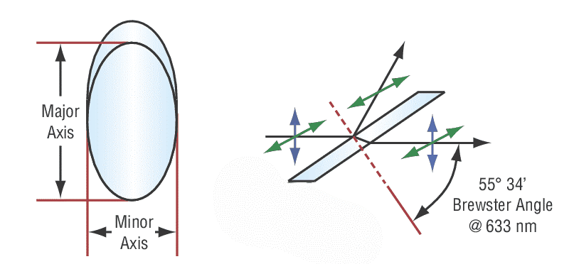 布魯斯特角窗片 是用于布儒斯特角光學系統的未鍍膜基底。它用于分離 S 偏振光和 P 偏振光。布魯斯特角放置時,P 偏振光部分將 100% 穿過窗口,而 S 偏振光部分將被反射 20%。MT-Optics 公司提供由 BK7 和紫外熔融石英制成的布儒斯特窗口。