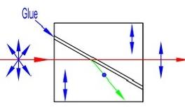 湯普森格蘭棱鏡 由兩塊相同的方解石棱鏡組合而成,非常光線被透射,而尋常光線則被偏轉和吸收。